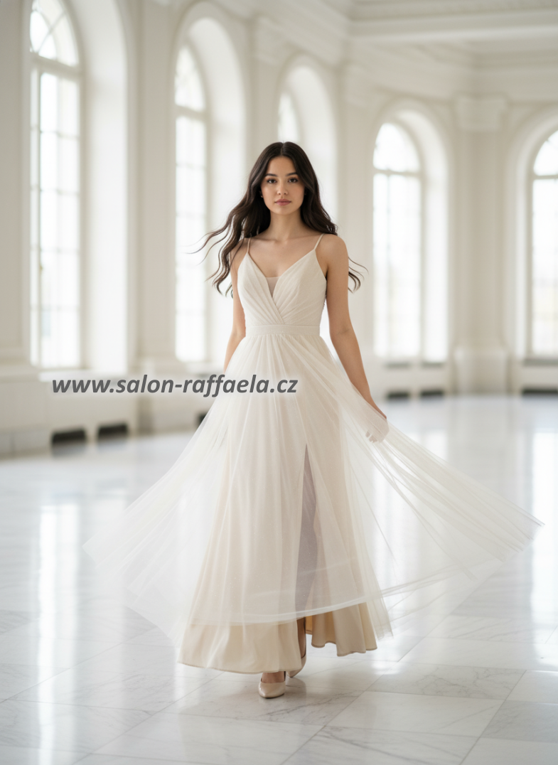 Světle béžové dlouhé šaty s jemným třpytem
