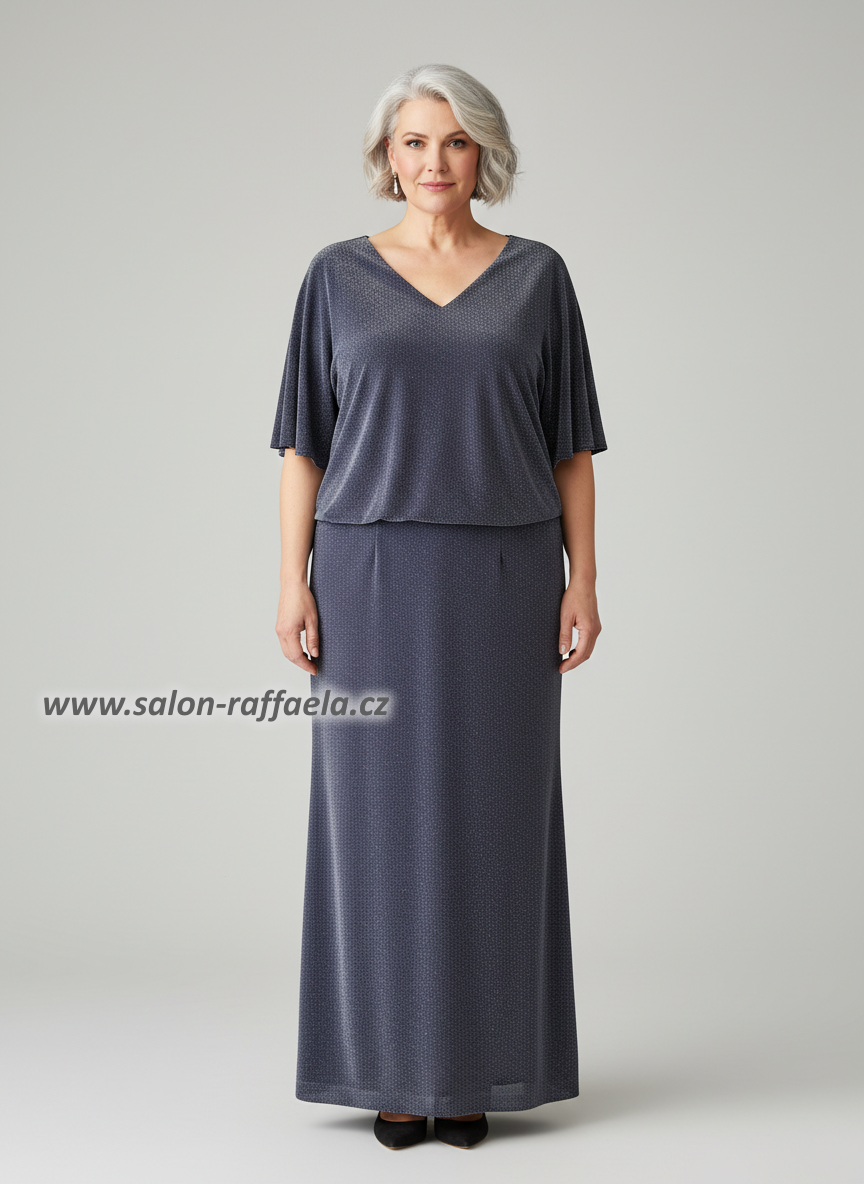 Šedomodré šaty s volným topem Palma (vel. 46)Skladem1 938 Kč
