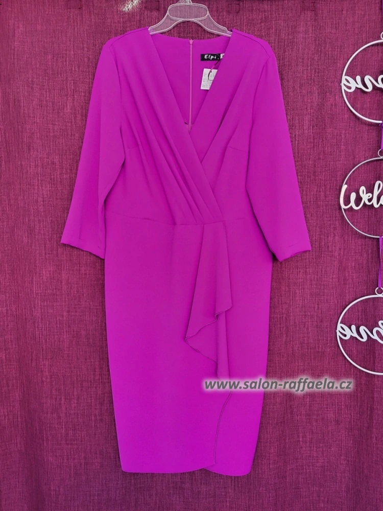 Fuchsiové pouzdrové šaty s chytrým volánem přes břicho Donegal (vel. 44/46)
