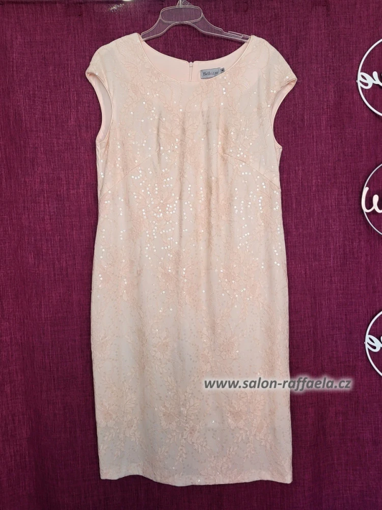 Jemně růžové pouzdrové šaty Kutaisi jemně poseté flitry (vel. 44/46)