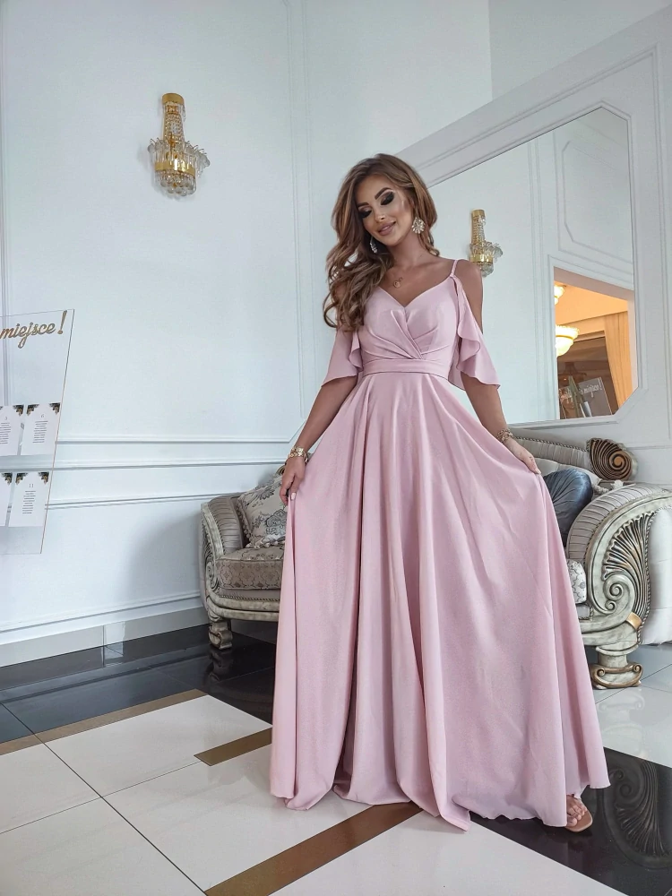 Starorůžové šaty Maine s velmi širokou sukní a spadlými rameny (vel. 38)